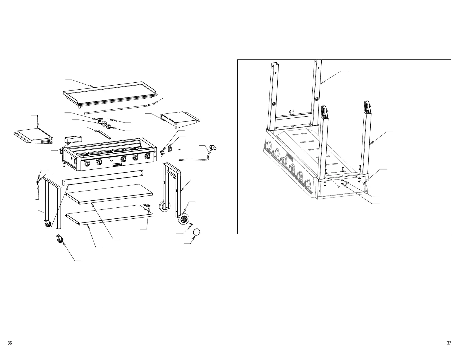 4. Ensamble las patas hasta el fondo de la parrilla como se muestra utilizando el hardware se indica en la Figura 1. Apriete todos