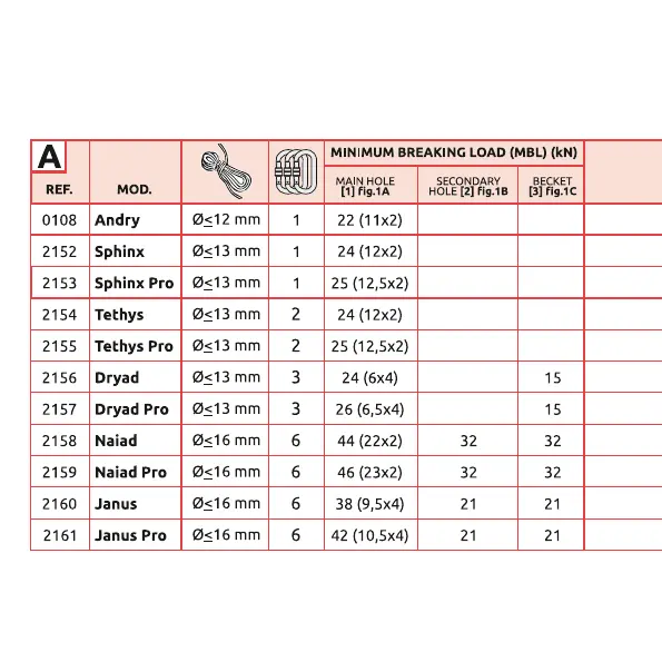 CAMP Andry - Technical Specifications and Performance; Specifications Table