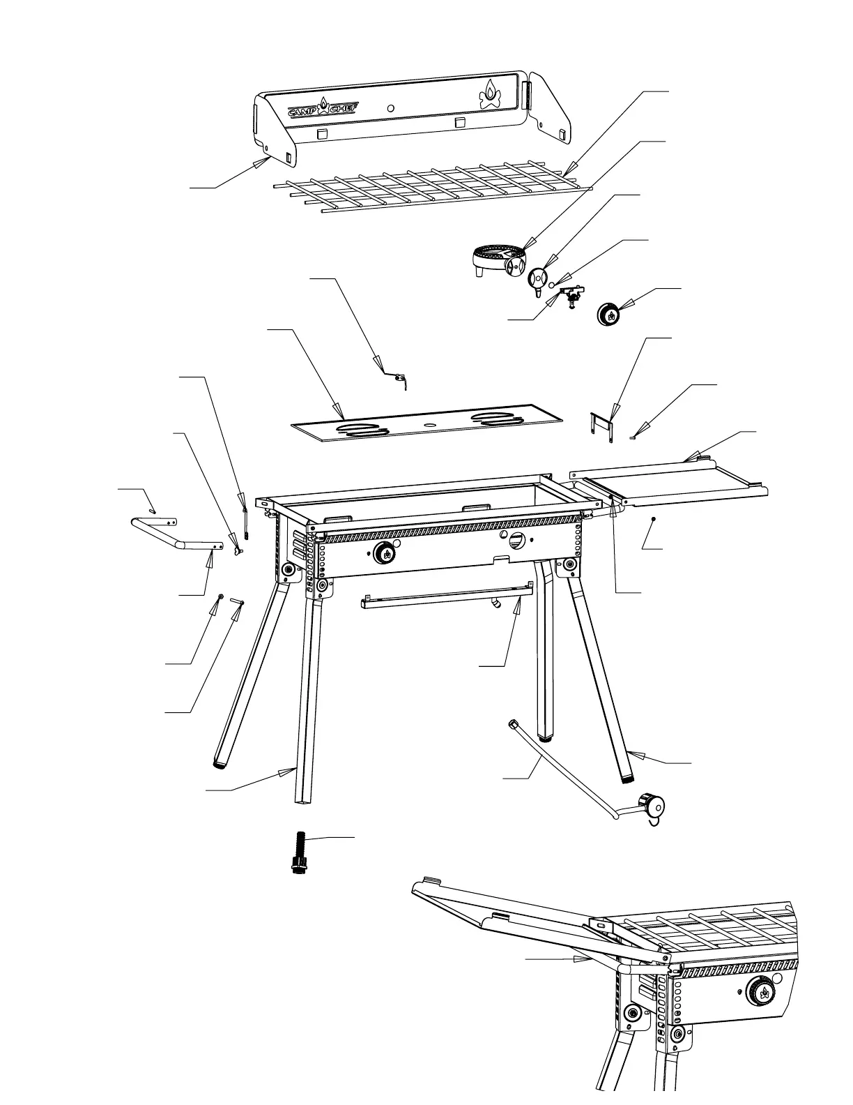 Note - Handle and shelf may be folded down when not in use.