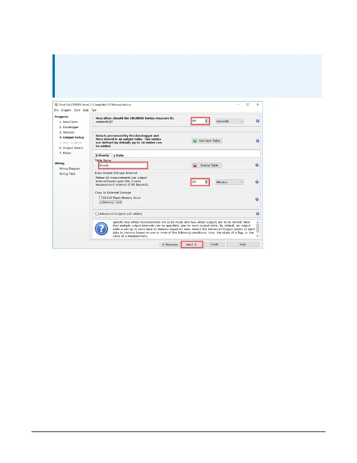 6. In Output Setup, type the scan rate (60 seconds recommended), meaningful table names,
