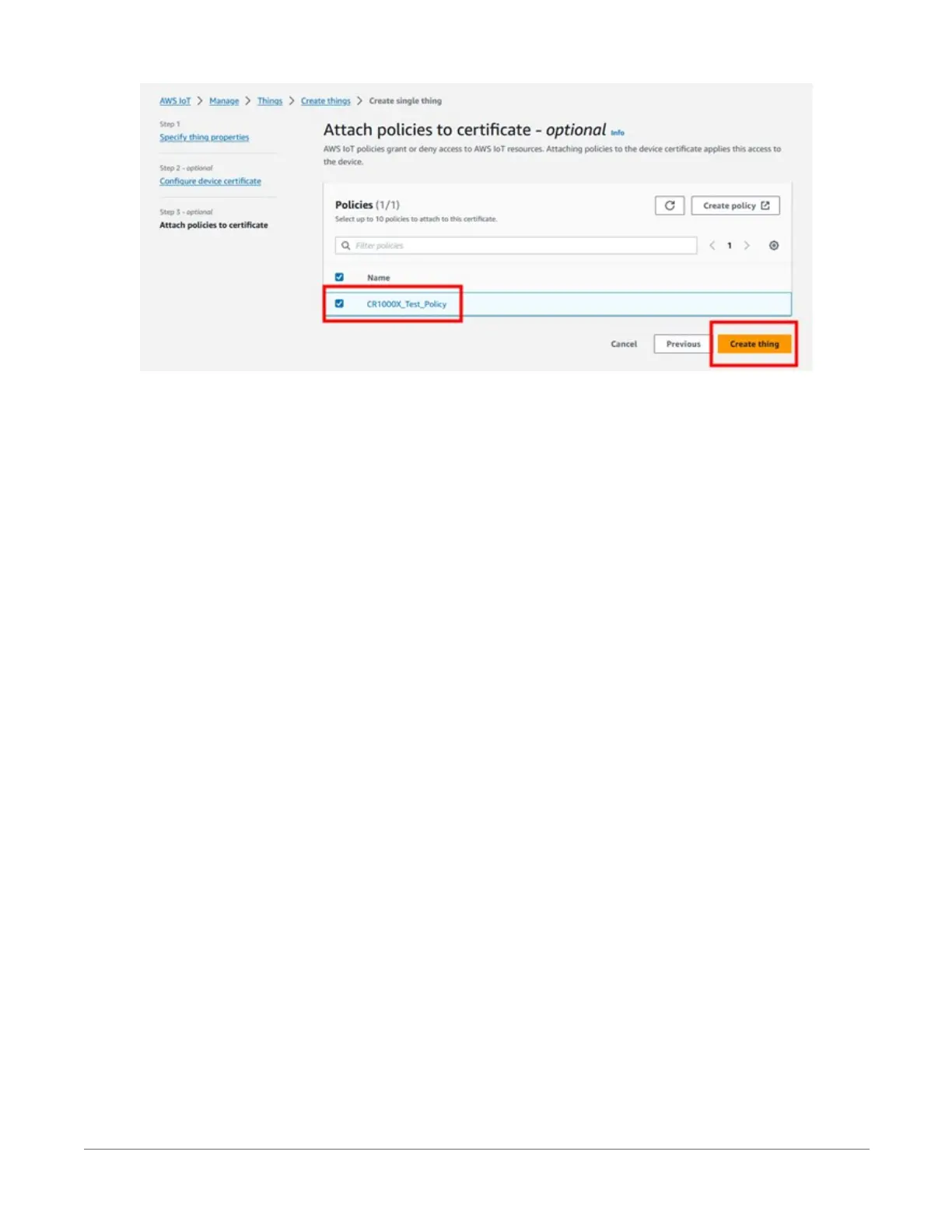 device certificate, Public key file, Private key file, and Root CA certificate. They’ll be needed