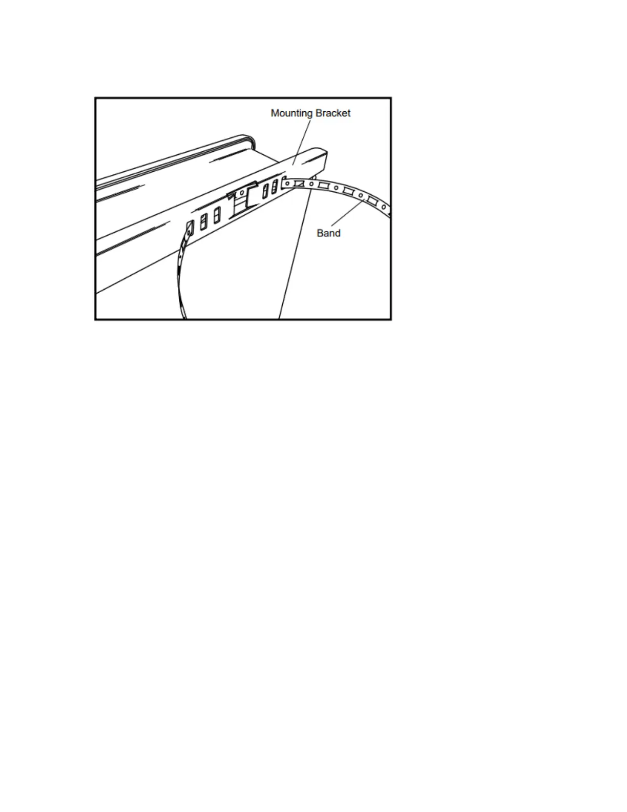 2. Feed a metal band through the openings in each bracket as shown in the following figure.