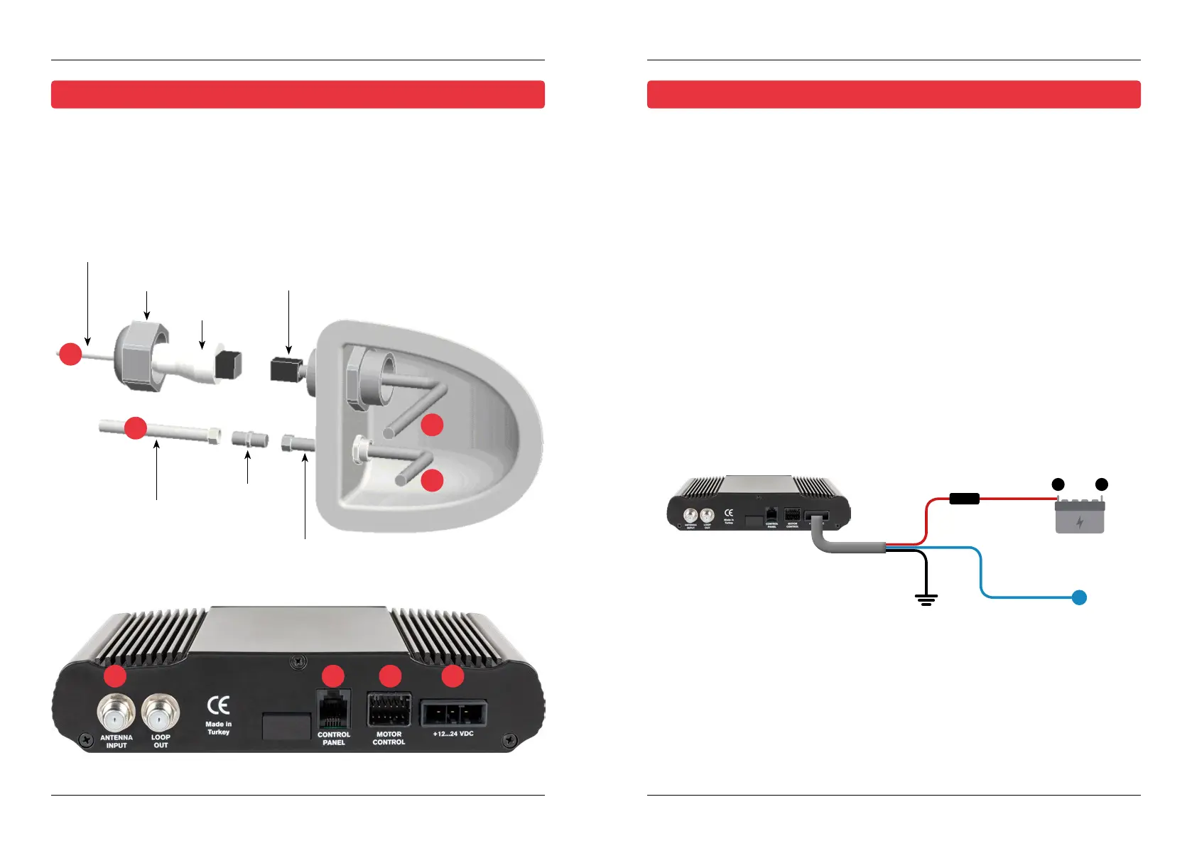 1. Verbinden Sie das LNB-Kabel (Nr. 2) mit dem LNB-Eingang (Nr. 5) am Steuergerät.