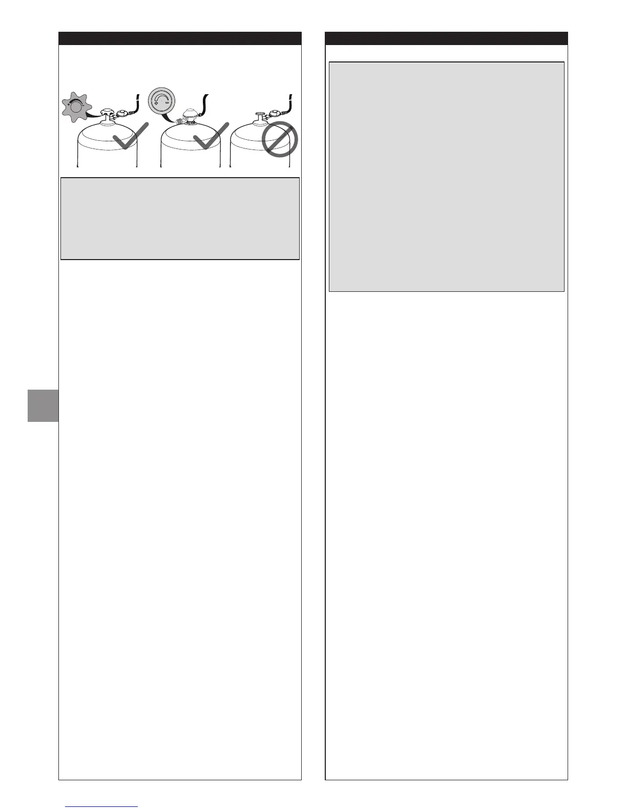 Bir gaz tüpünü takarken veya sökerken, daima açık, çok