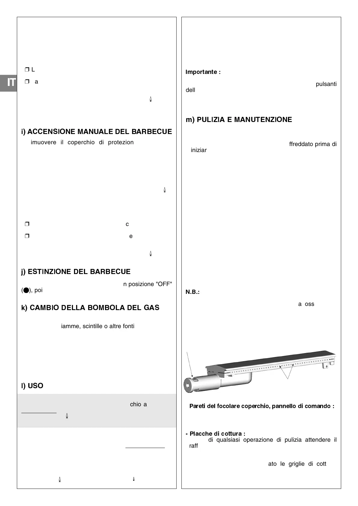 i) ACCENSIONE MANUALE DEL BARBECUE