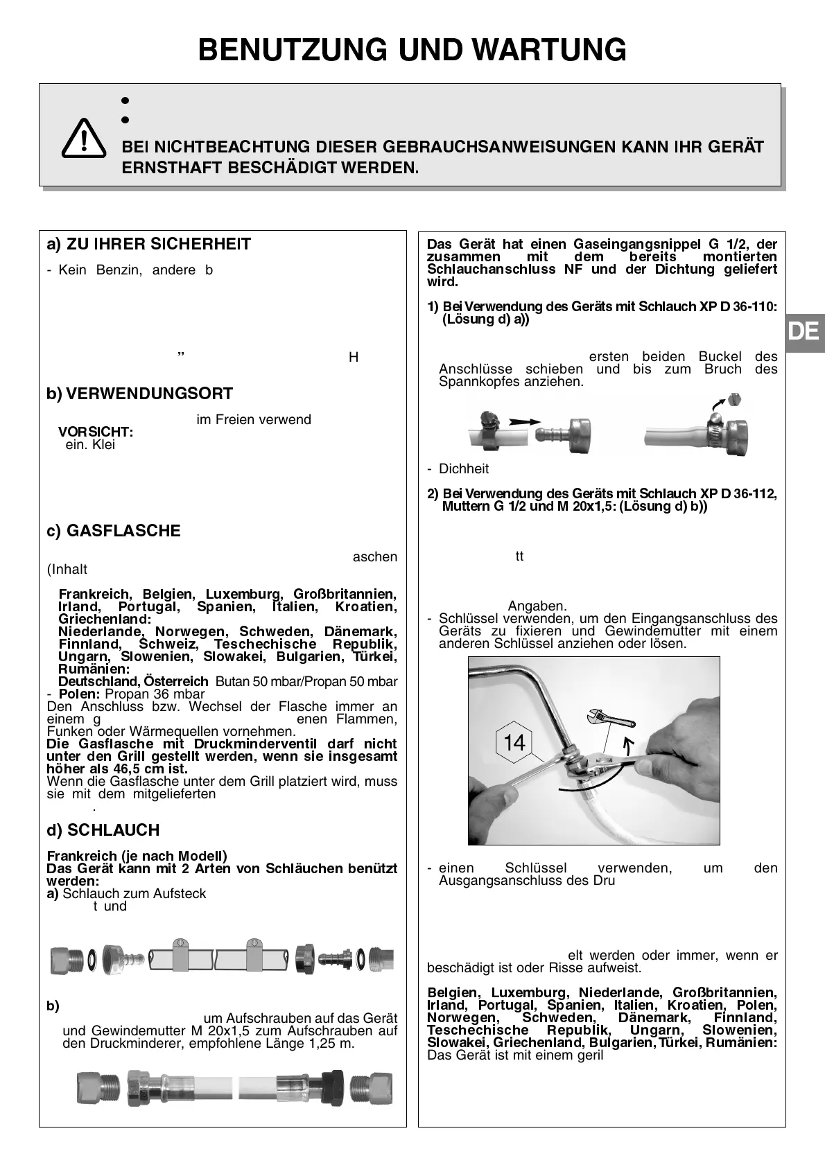 Gasschlauch angeschlossen wird. Dieser darf nicht