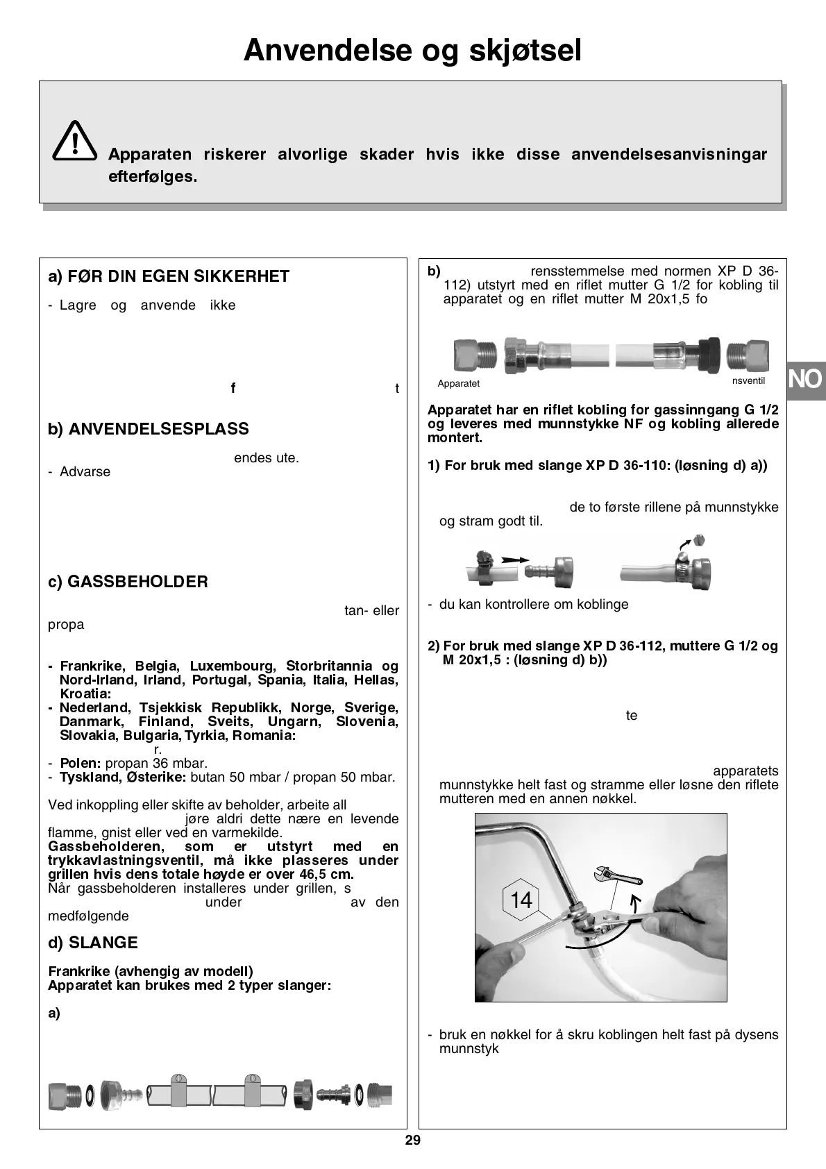 1) For bruk med slang e XP D 36-110: (løsning d) a))