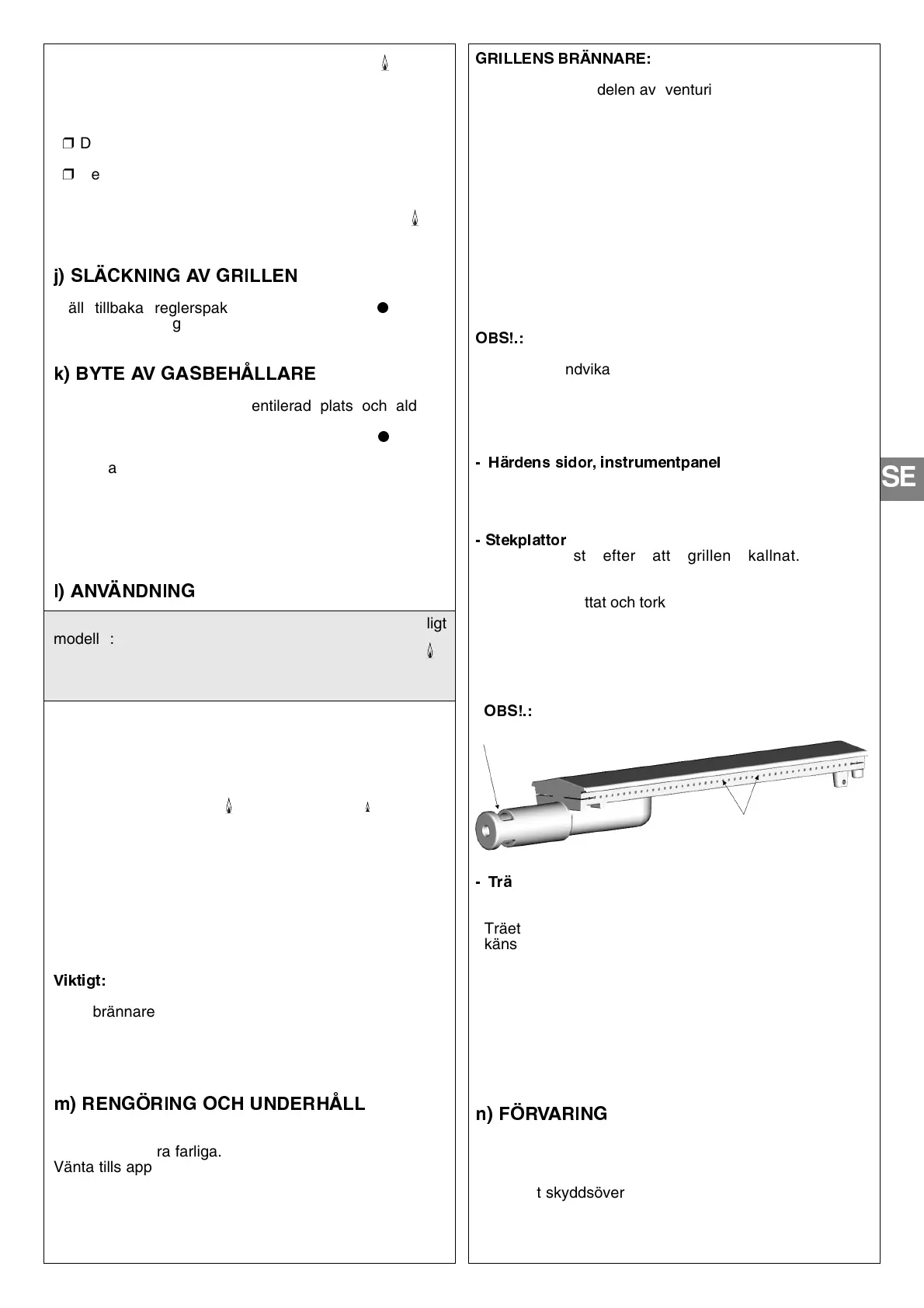 rengöras och kontrolleras. Ta bort hela brännaren,