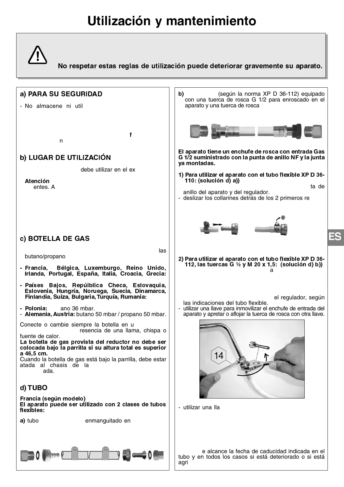 1) Para utilizar el aparato con el tubo flexible XP D 36-
