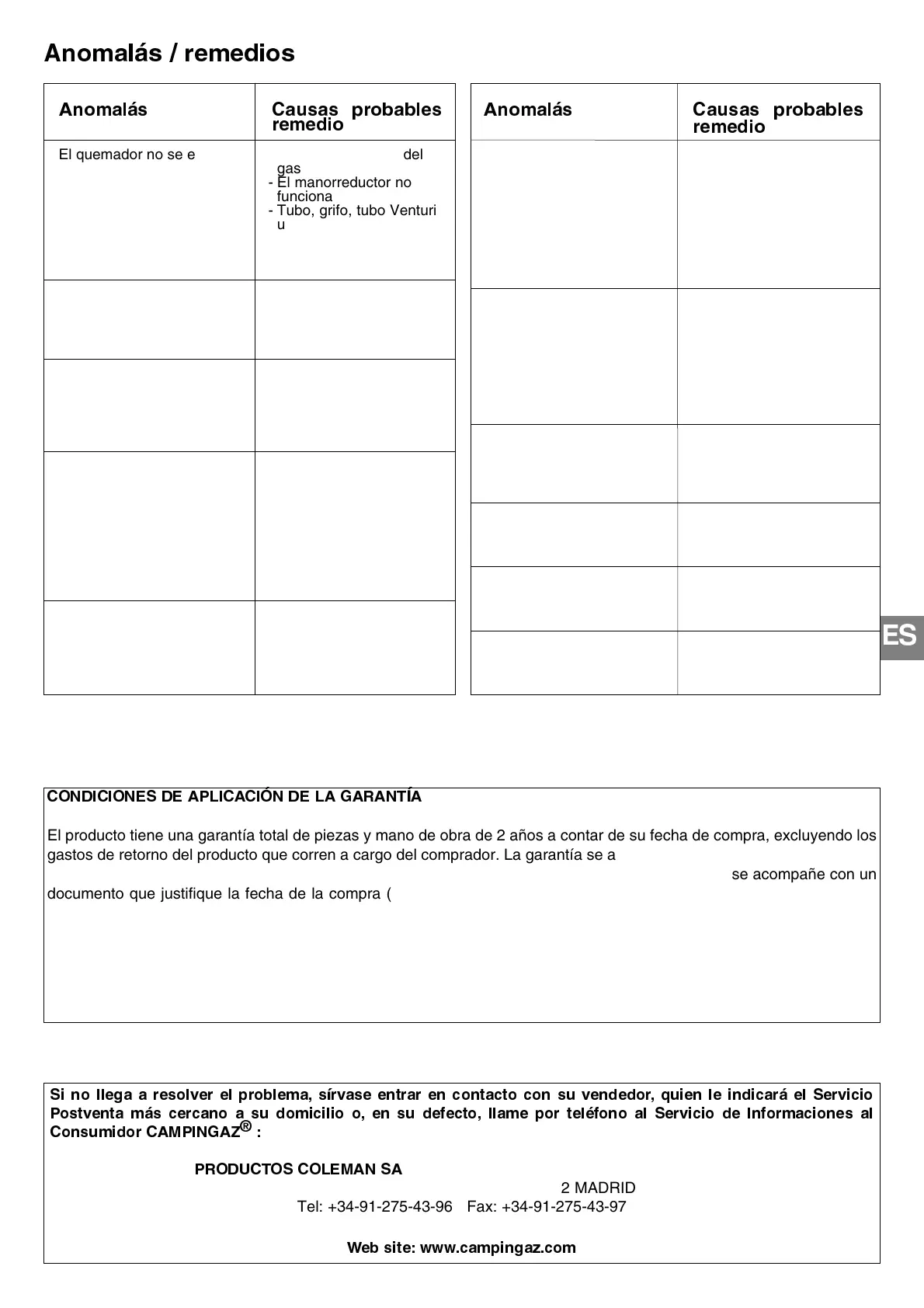 gastos de retorno del producto que corren a cargo del comprador. La garantía se aplica cuando el producto suministrado