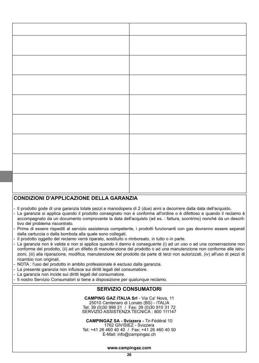- La presente garanzia non influisce sui diritti legali del consumatore.