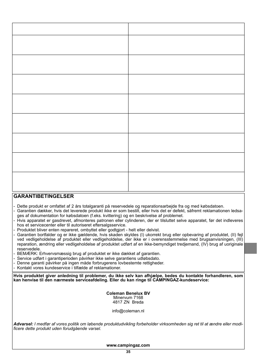 kan henvise til den nærmeste serviceafdeling. Eller du kan ringe til CAMPINGAZ-kundeservice:
