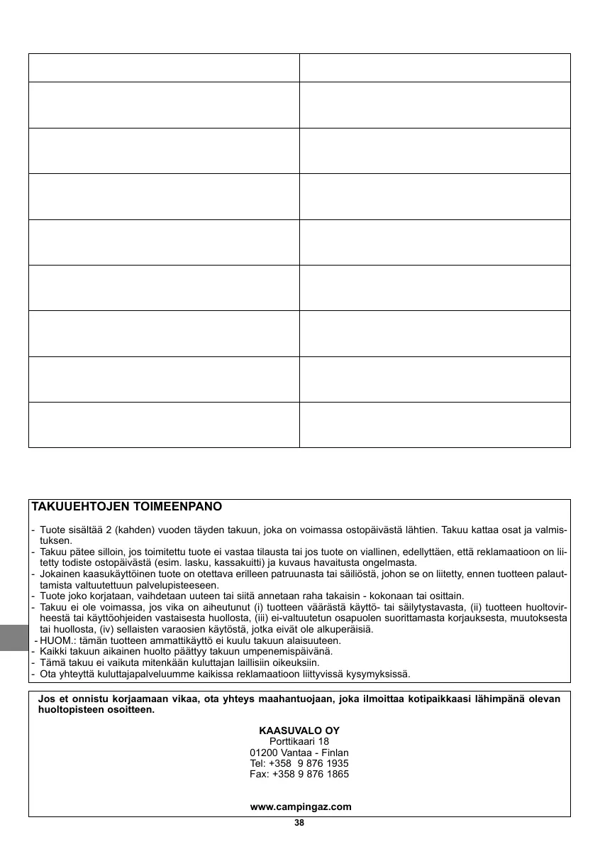 - Tämä takuu ei vaikuta mitenkään kuluttajan laillisiin oikeuksiin.