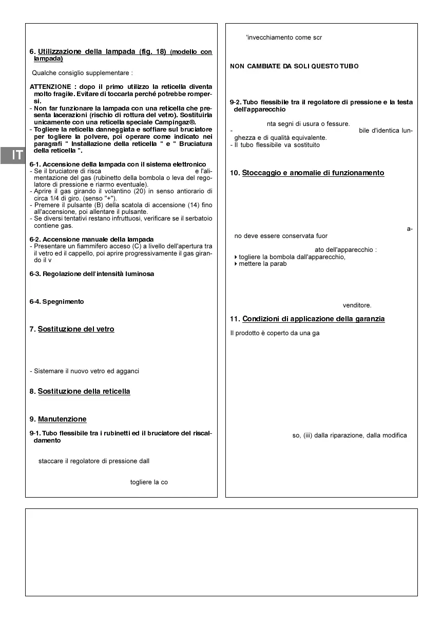 9-1. Tubo flessibile tra i rubinetti ed il bruciatore del riscal-