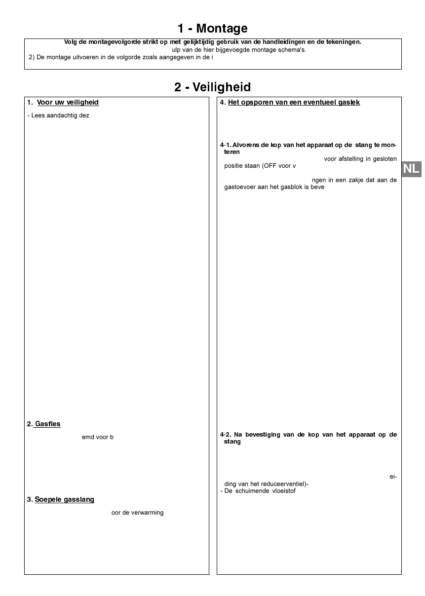 Volg de montagevolgorde strikt op met gelijktijdig gebruik van de handleidingen en de tekeningen.