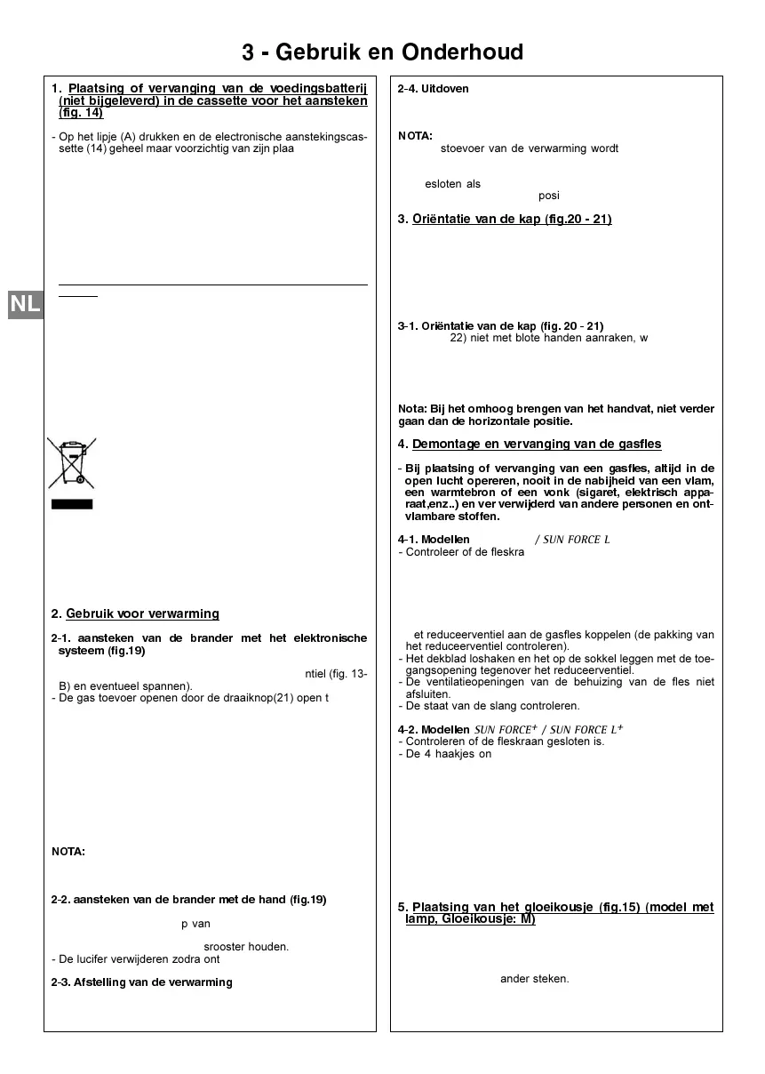 1)De gastoevoer van de verwarming wordt automatisch afge-