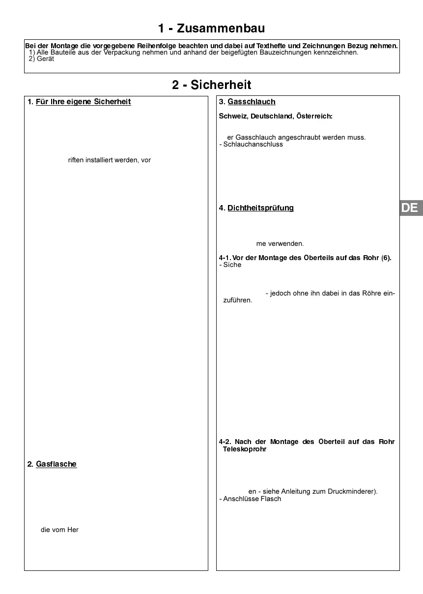 de Anleitung aufmerksam durchlesen. Diese sorgsam