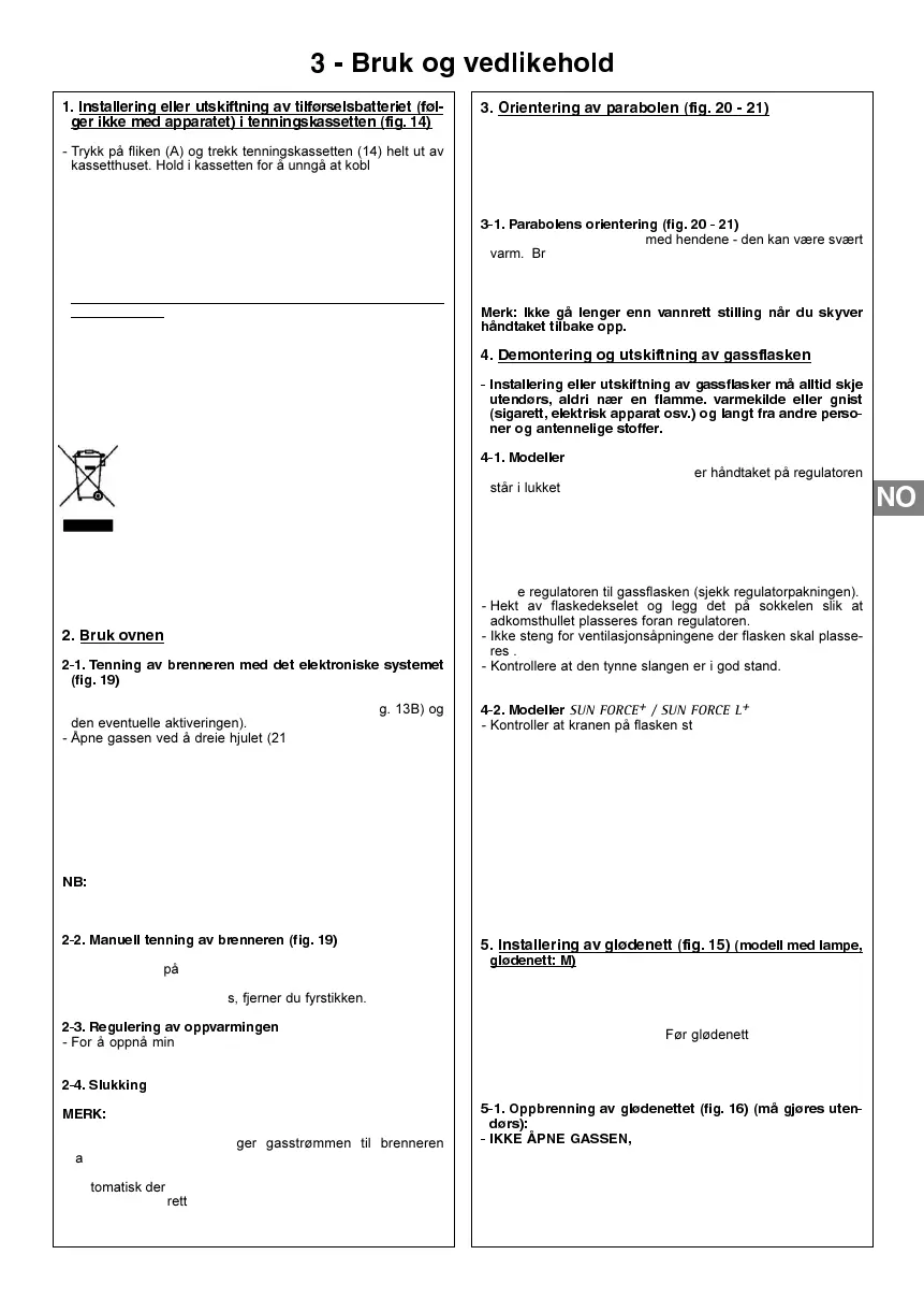 - Hvis brenneren slukkes, må du utføre tenningsoperasjonen