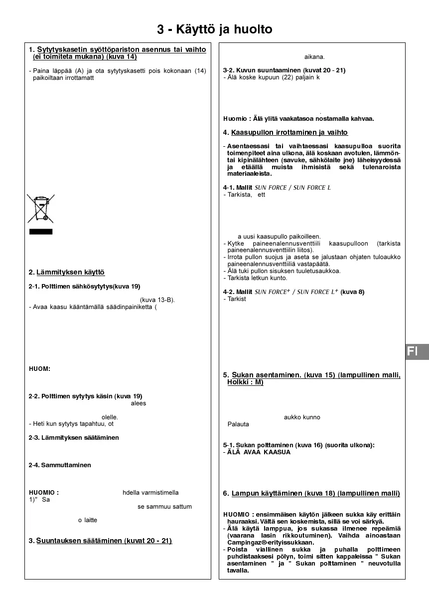 - Jos poltin sammuu : aloita sytytystoiminto uudelleen.