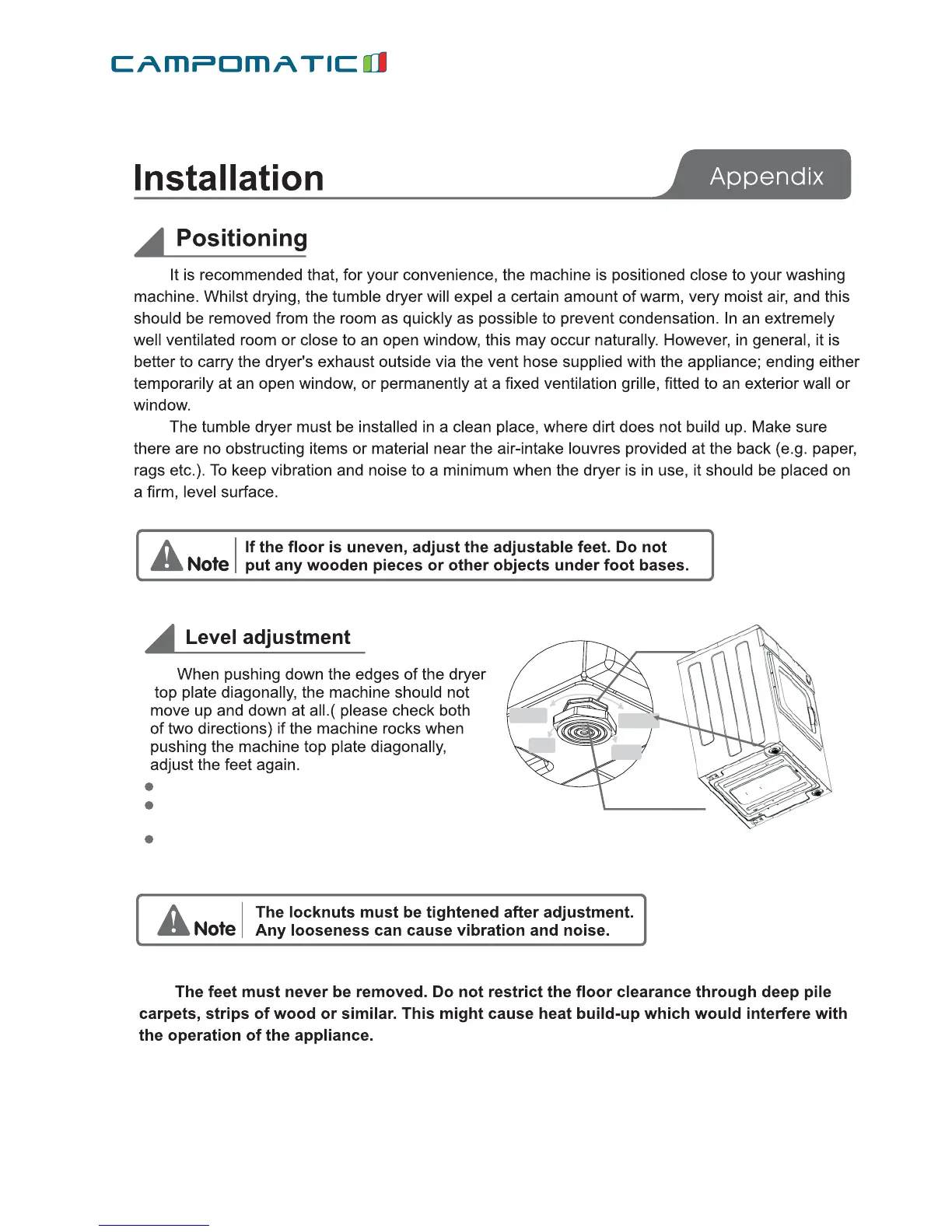 Tighten the locknut after insuring the dryer is level.