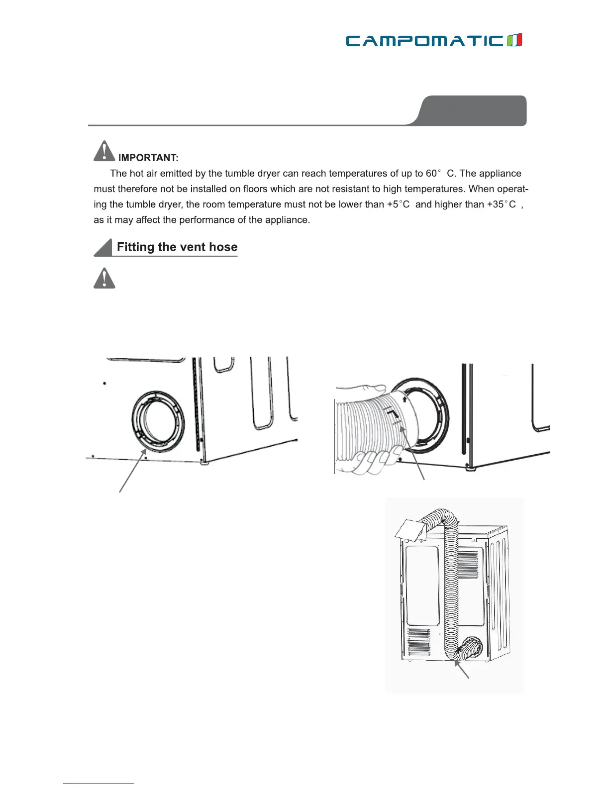 outlet at the back, aligning arrows of hose and ring nut,fastening by screwing hose to the direction