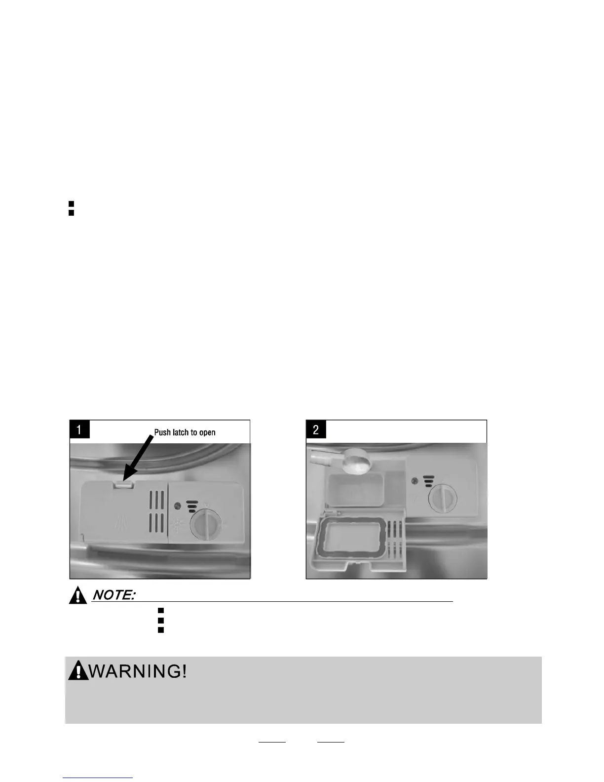 The dispens er m ust be re fill ed before the s tar t of e ach was h cy cle f ol lo wing the inst ructi ons