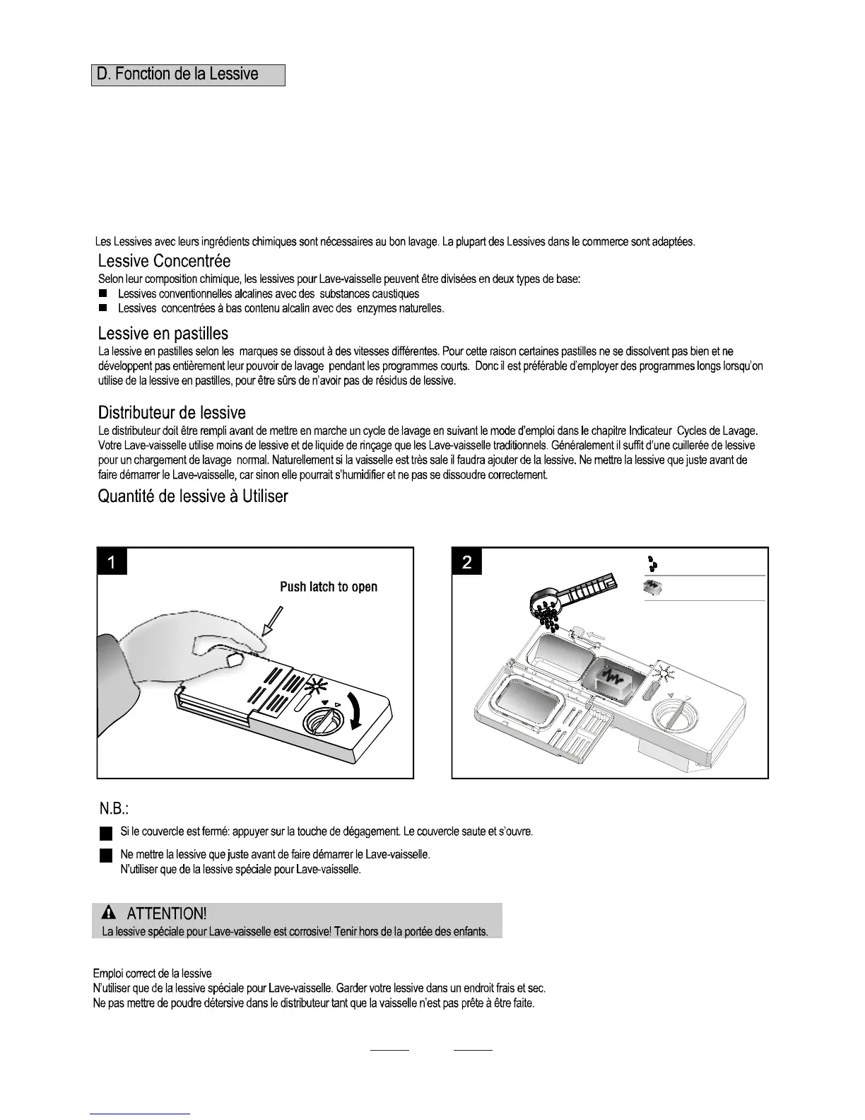 Utilisez uniquement un détergent prévu pour une utilisation en lave-vaisselle. Conservez-le dans un endroit sec et