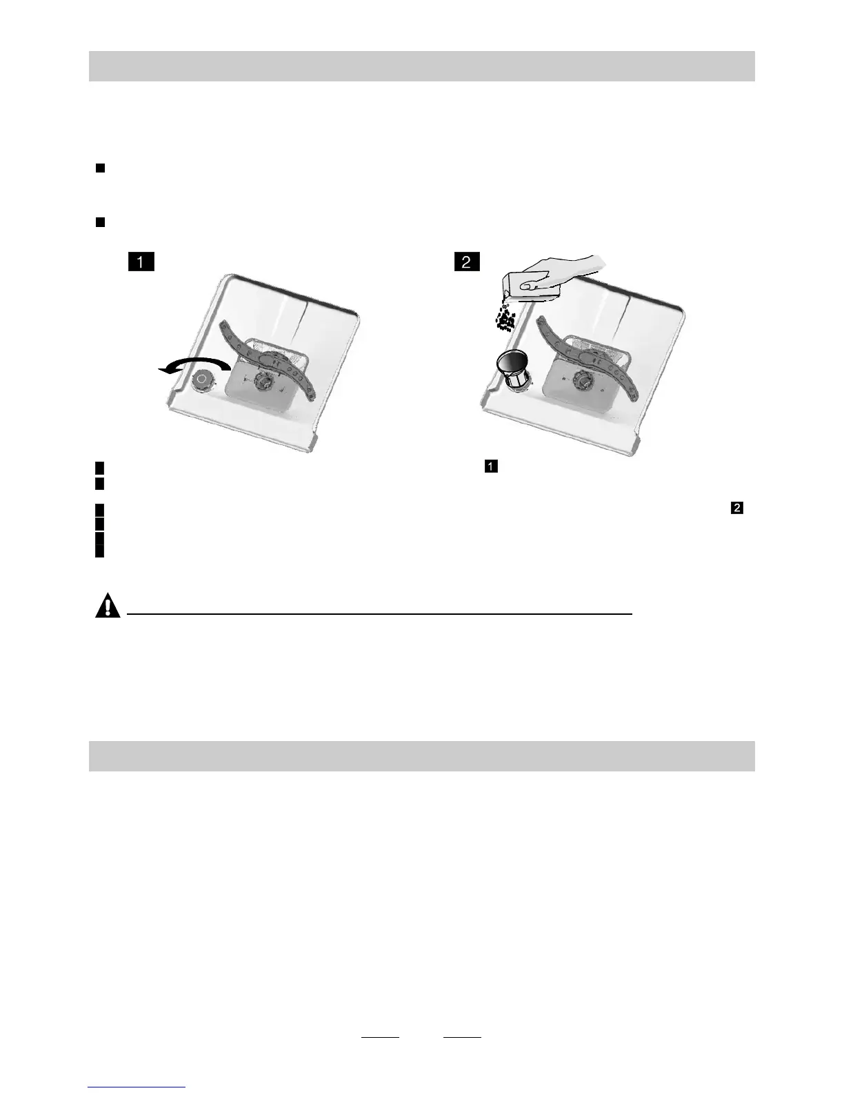 Il serbat oi o del sale è po sto sotto il ceste llo i nferio re e deve esser e ri empito come s pie gato qui di se gui to: