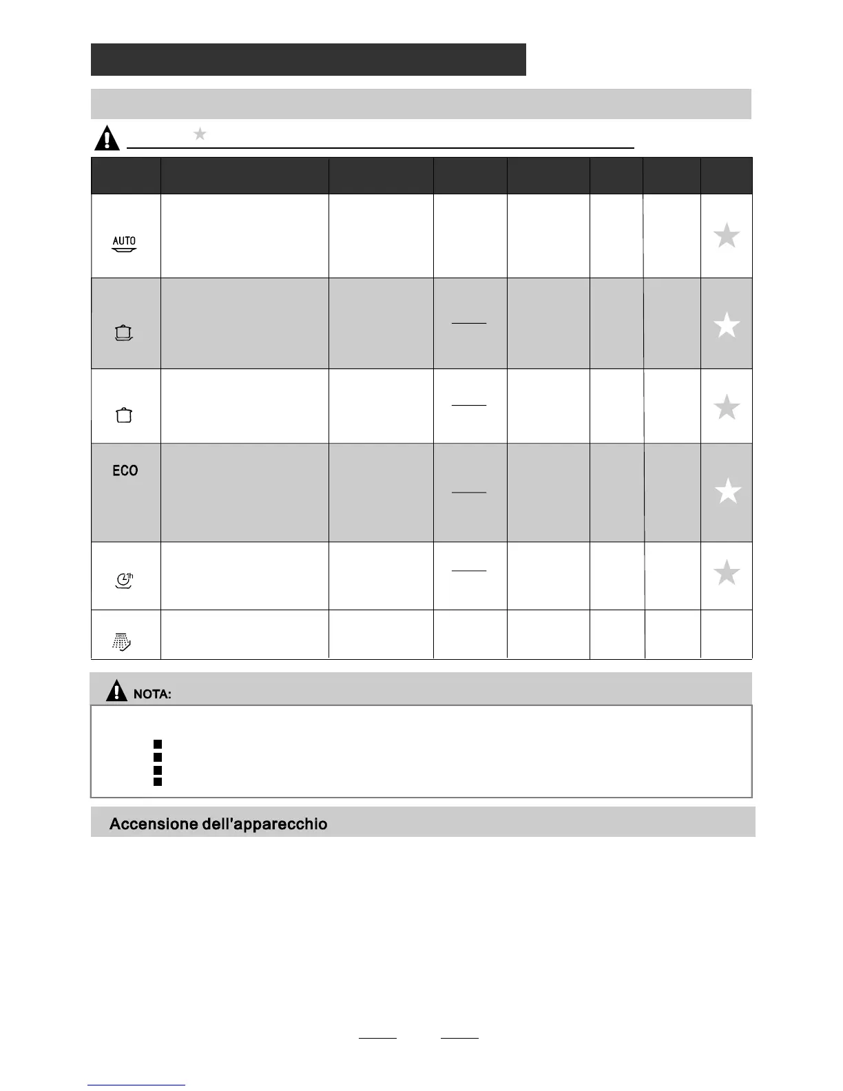 AUTO -> INTENSIVE -> NO RMAL-> ECO -> 1 HOUR ->S OA K. Quando s iseleziona un programma,