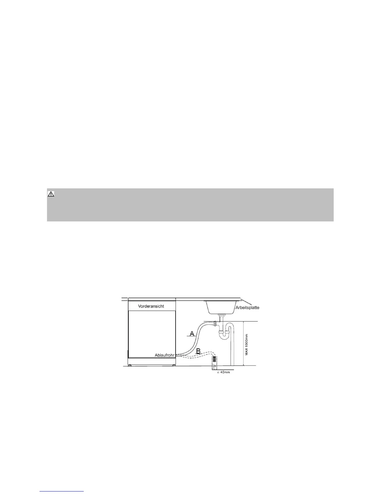 Führen Sie den Ablaufschlauch in einen Ablauf mit einem Mindestdurchmesser von 40 mm ein oder