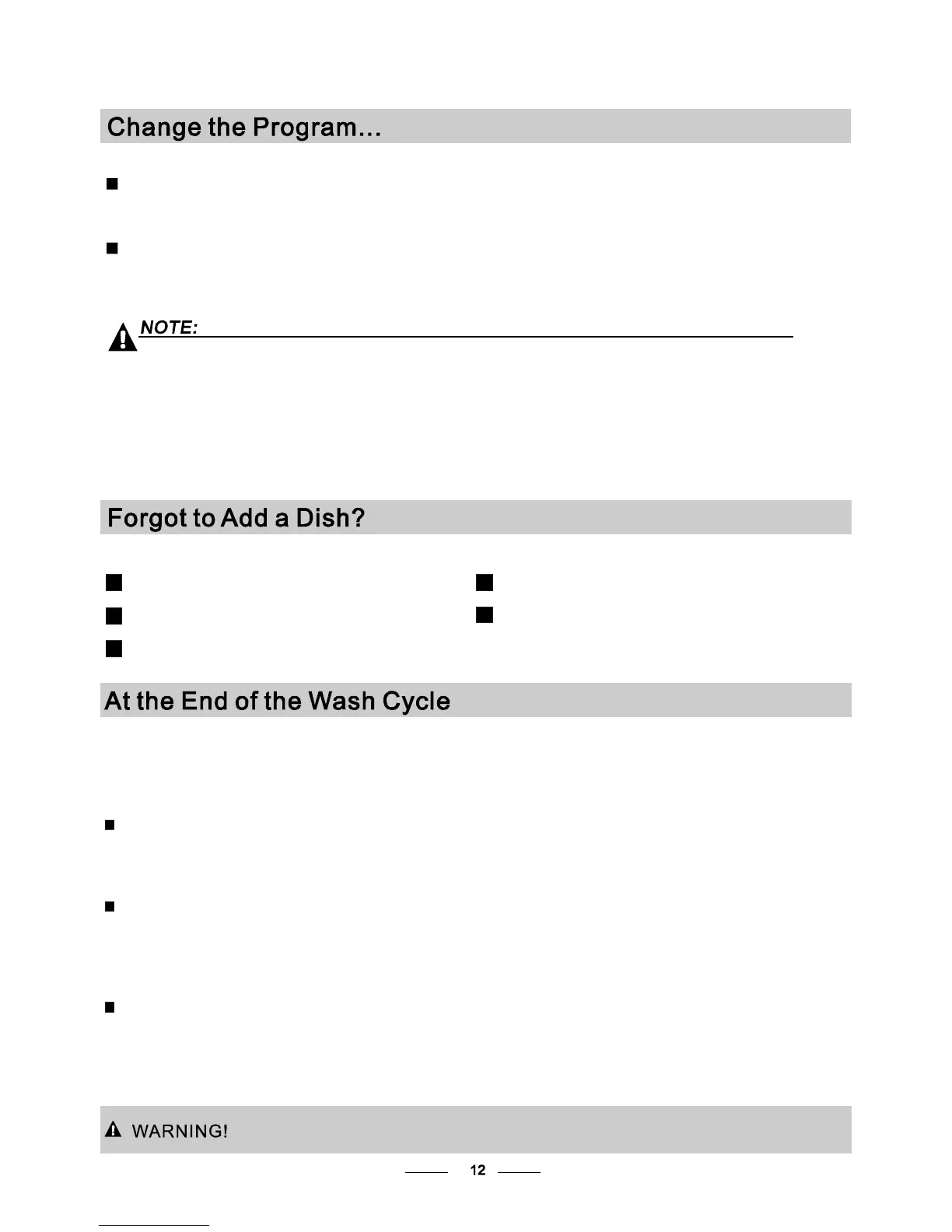 A forgotten dish can be added any time befor e the detergent cup opens.