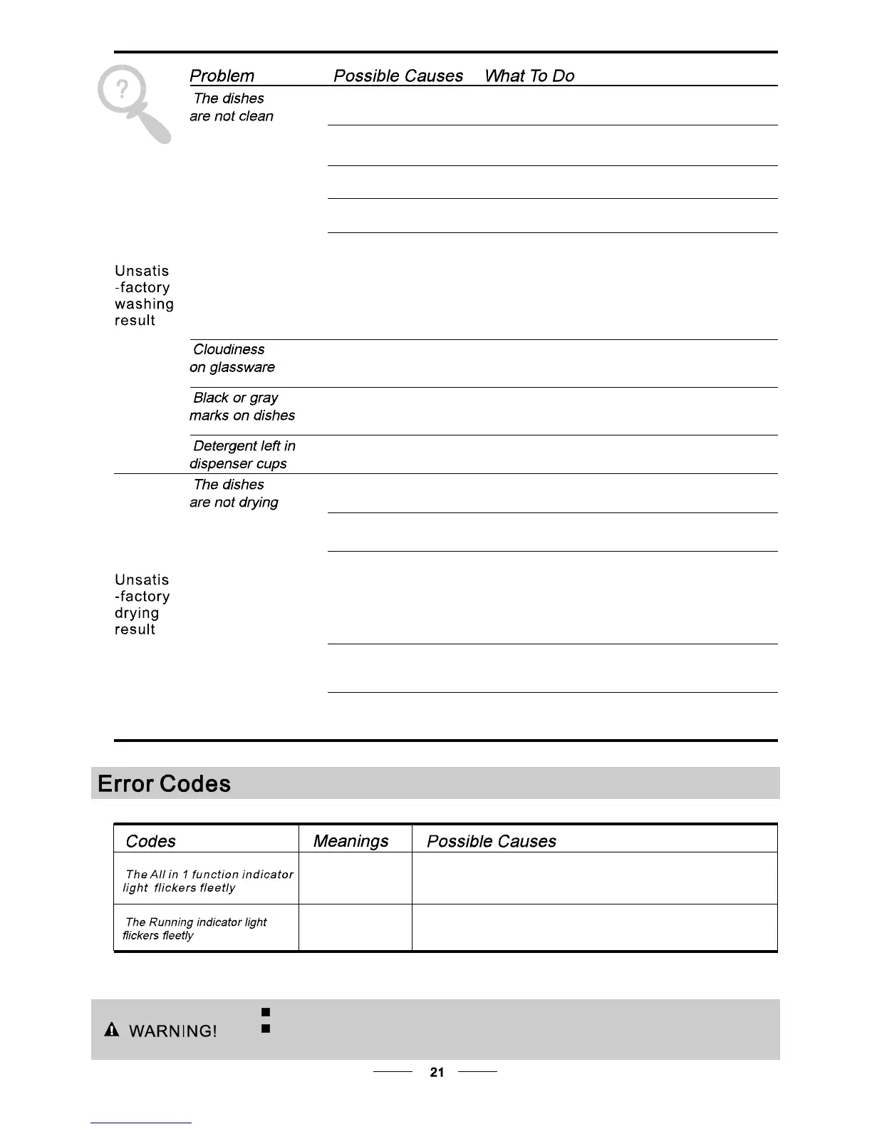 When some malfunctions c ome on, the applianc e w ill display error codes to warn you :
