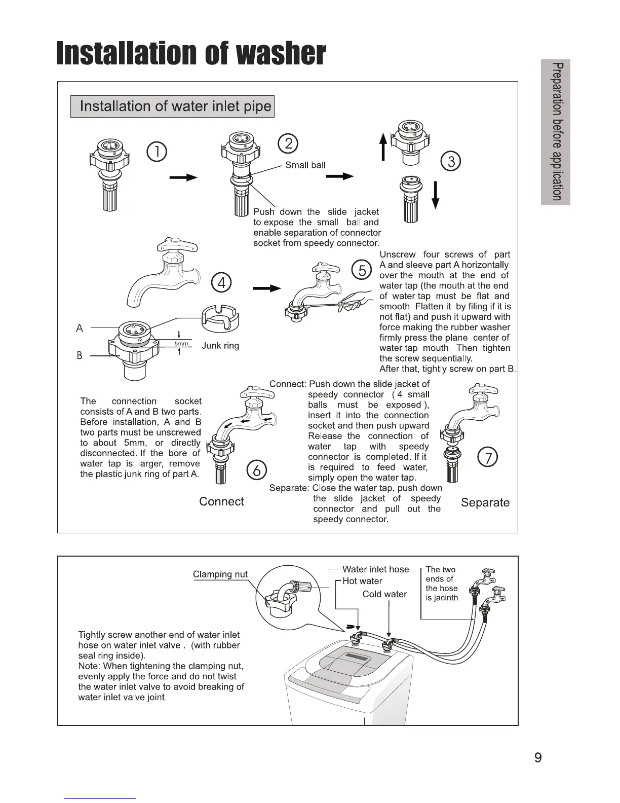 Campomatic TL12E - Water Inlet Pipe Installation; Connecting the Inlet Pipe to the Tap; Preparation Before Washing; Ensuring Washer Stability