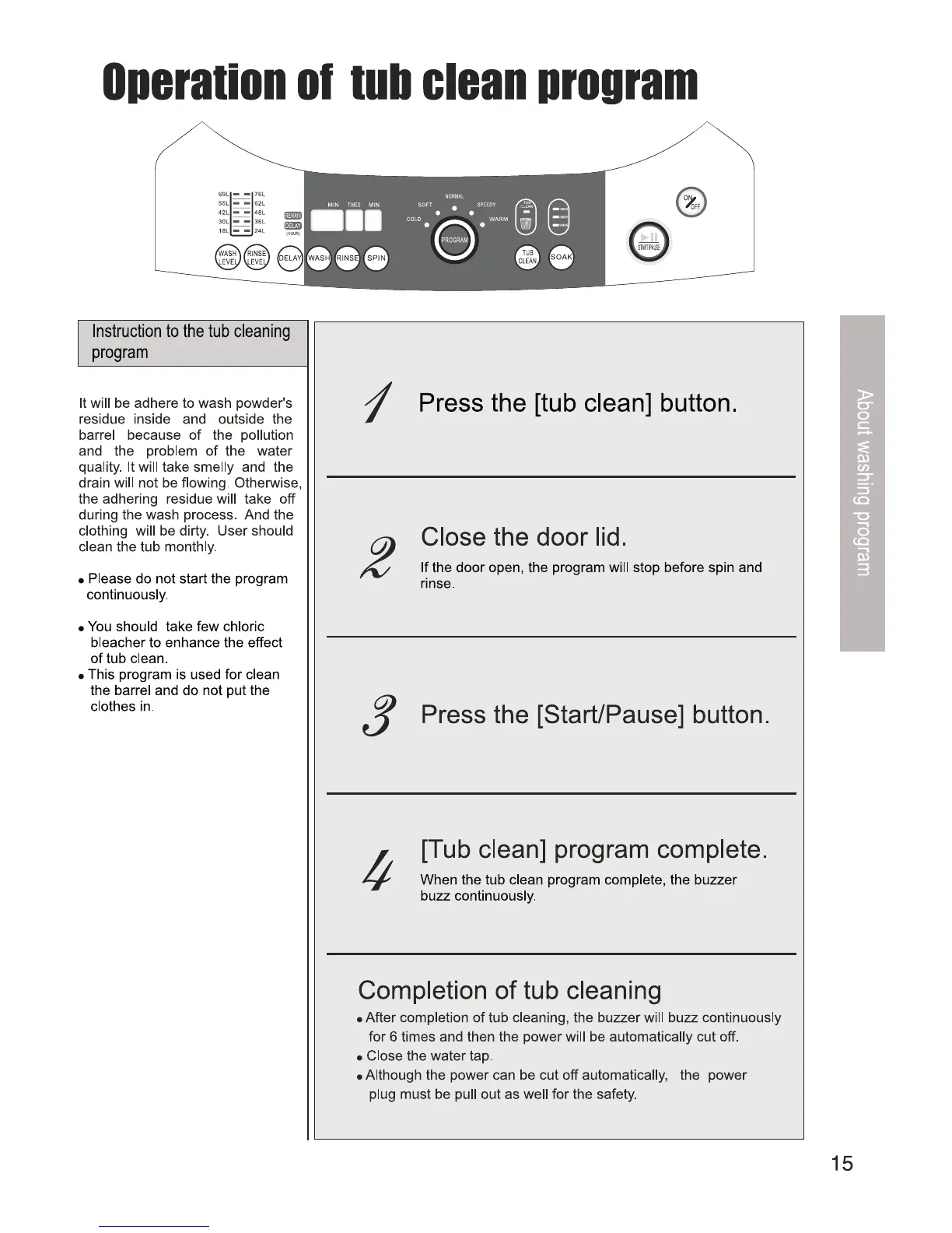 Campomatic TL12E - Other Full Automatic Programs; Program Descriptions (Cold, Soft, Speedy, Warm); Operating Other Wash Programs; Other Program Completion