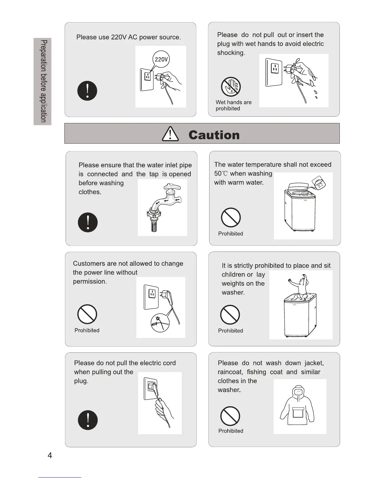 Campomatic TL12E - Operational Safety Cautions; Power Source and Handling Cautions; Water and Usage Cautions