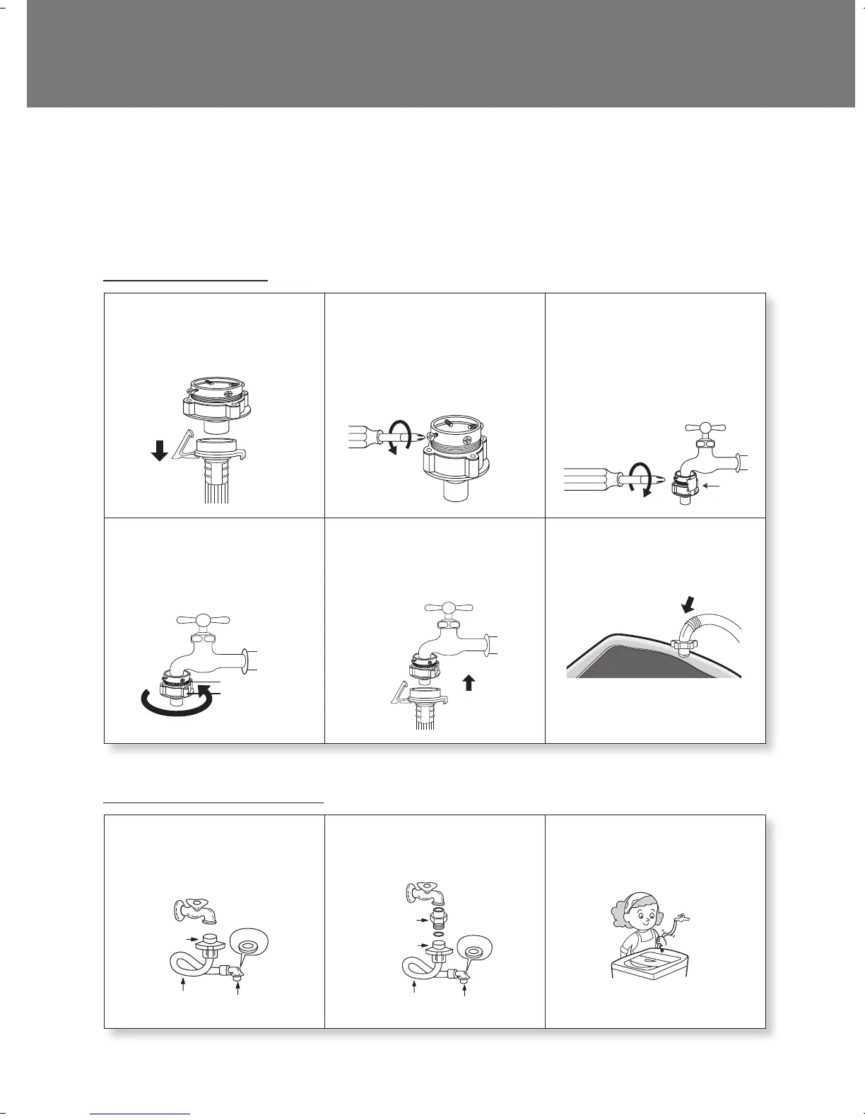 In using only one water tap or in case of only one water inlet valve, connect the inlet hose to the cold water