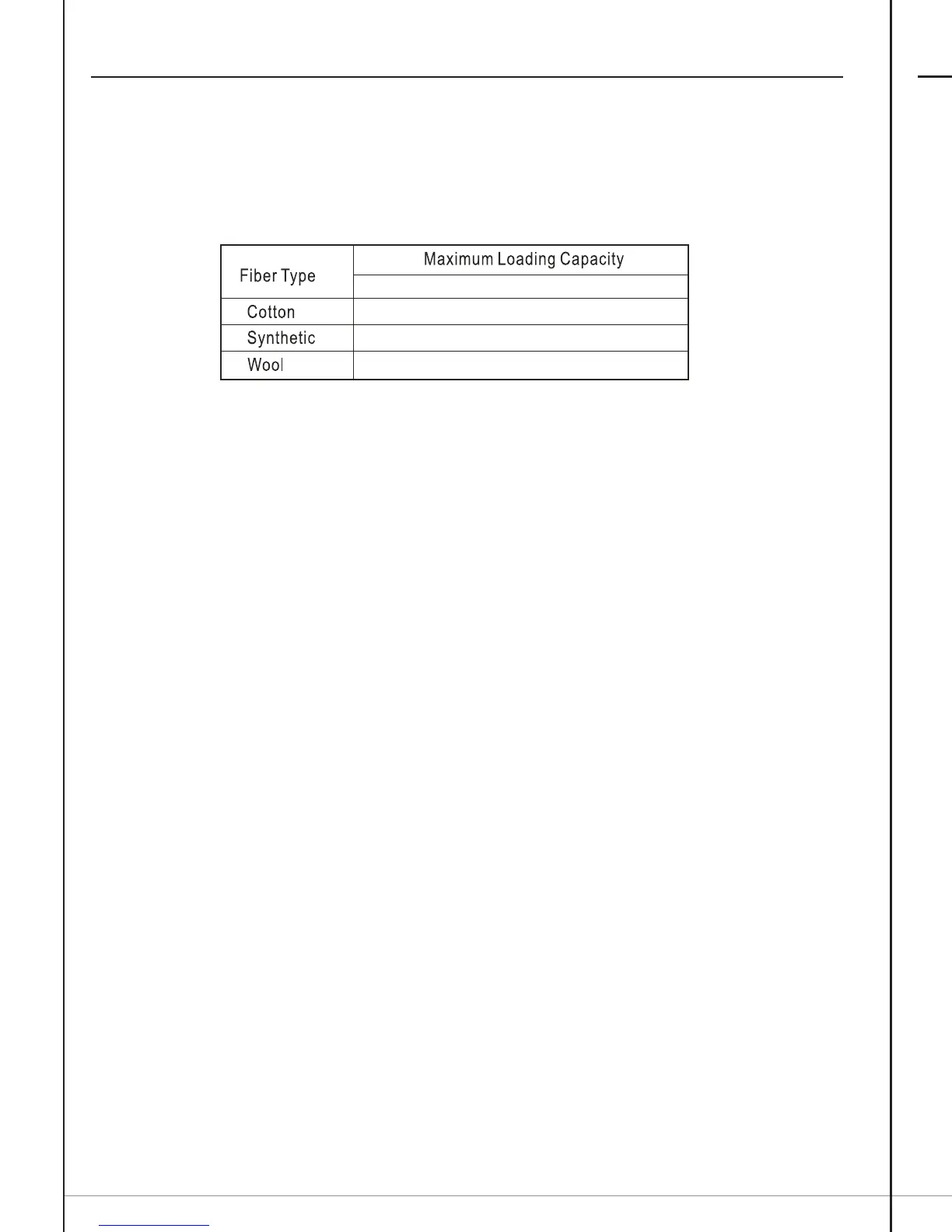 the maximum affordable washing quantity according to the following table.