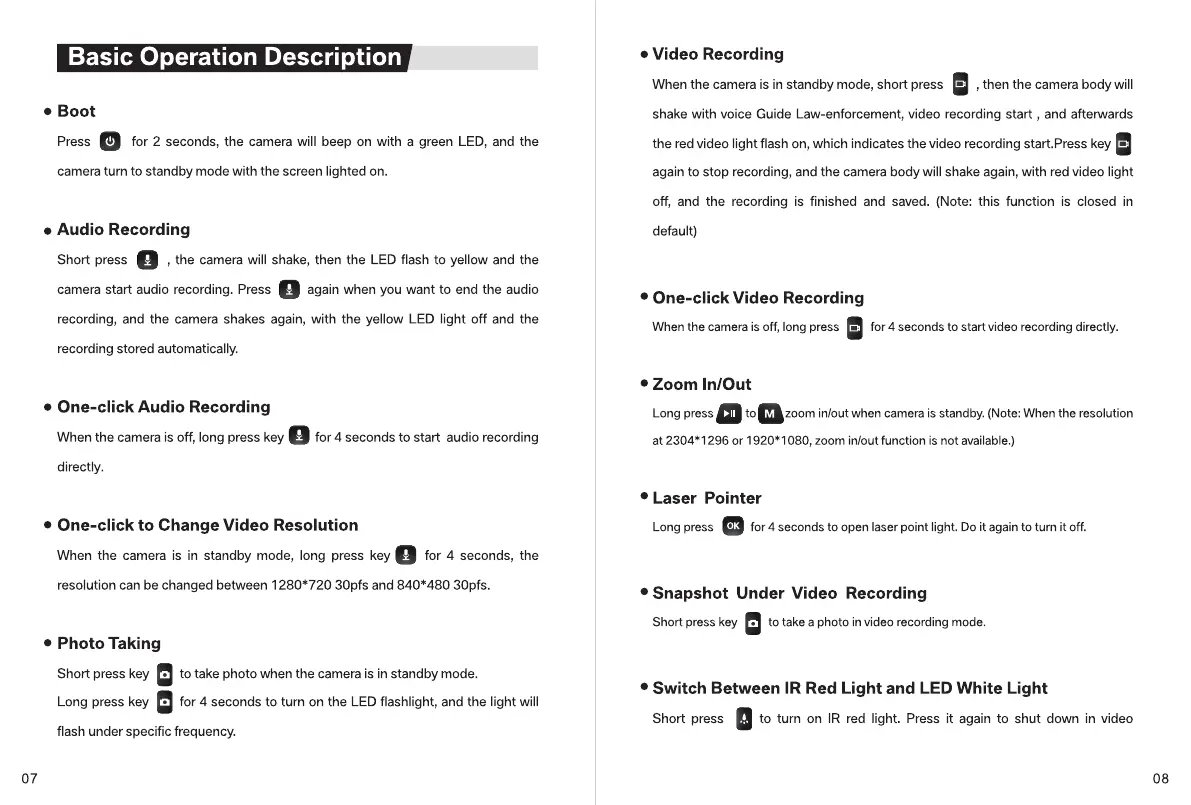 CamPro 1826 - Basic Operation Details; Core Operations; One-Click Functions and Resolution