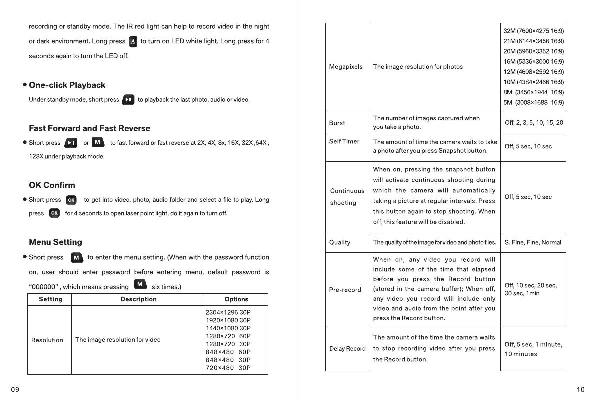 CamPro I826 - Playback and Menu Navigation; Playback and File Navigation; Menu Settings and Configuration
