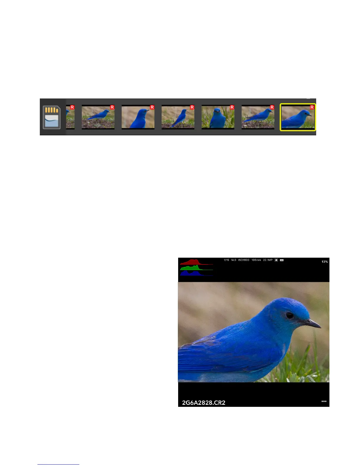 blue video icon. JPG images will have no icon. If an image is captured in both RAW and JPG
