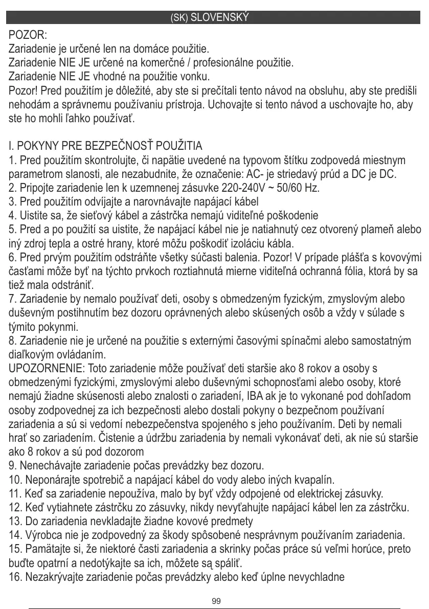 Zariadenie je určené len na domáce použitie.