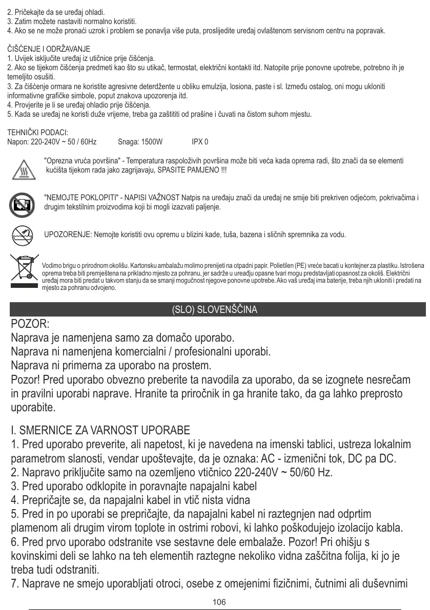 Napon: 220-240V ~ 50 / 60Hz Snaga: 1500W IPX 0