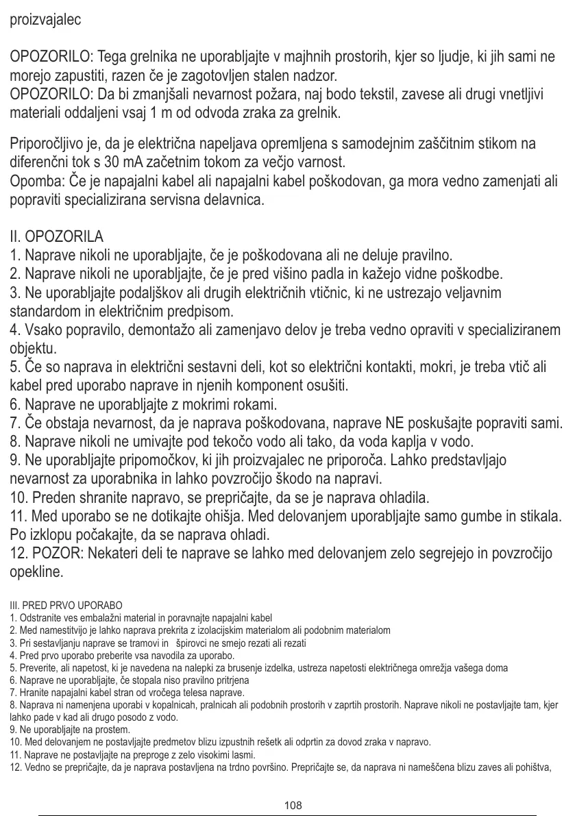 OPOZORILO: Tega grelnika ne uporabljajte v majhnih prostorih, kjer so ljudje, ki jih sami ne