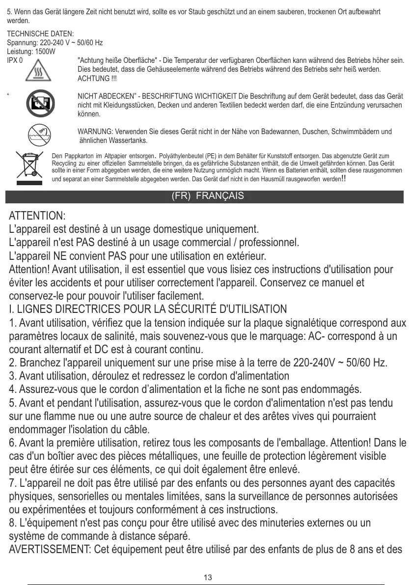 7. L'appareil ne doit pas être utilisé par des enfants ou des personnes ayant des capacités