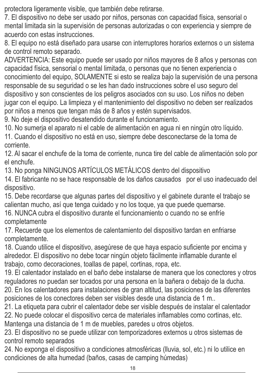 7. El dispositivo no debe ser usado por niños, personas con capacidad física, sensorial o