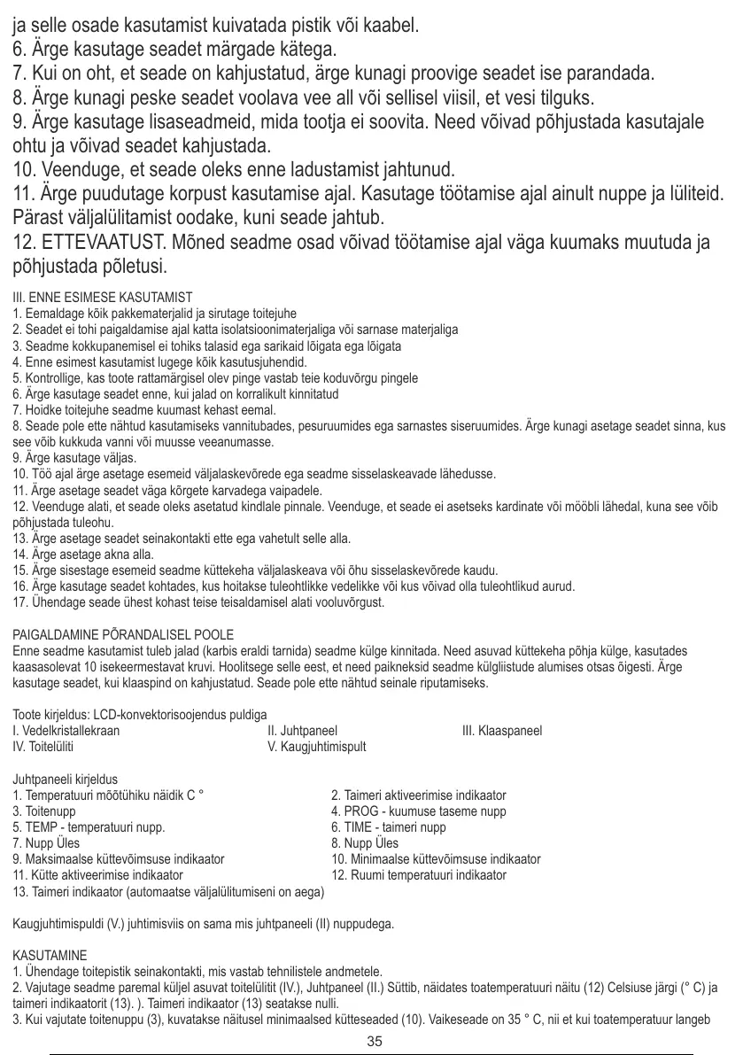 15. Ärge sisestage esemeid seadme küttekeha väljalaskeava või õhu sisselaskevõrede kaudu.