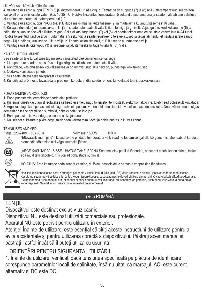 Atenţie! Înainte de utilizare, este esențial să citiți aceste instrucțiuni de utilizare pentru a