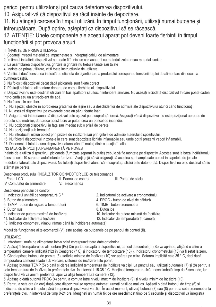 Descrierea produsului: ÎNCĂLZITOR CONVECTOR LCD cu telecomandă