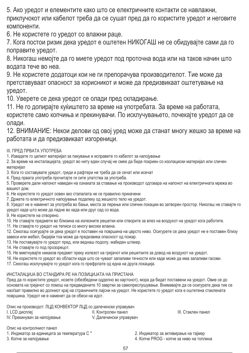 Опис на производот: ЛЦД КОНВЕКТОР ЛЦД со далечински управувач