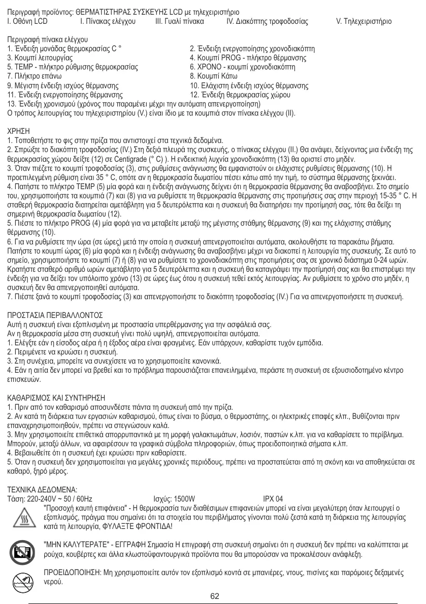 Περιγραφή προϊόντος: ΘΕΡΜΑΤΙΣΤΗΡΑΣ ΣΥΣΚΕΥΗΣ LCD με τηλεχειριστήριο